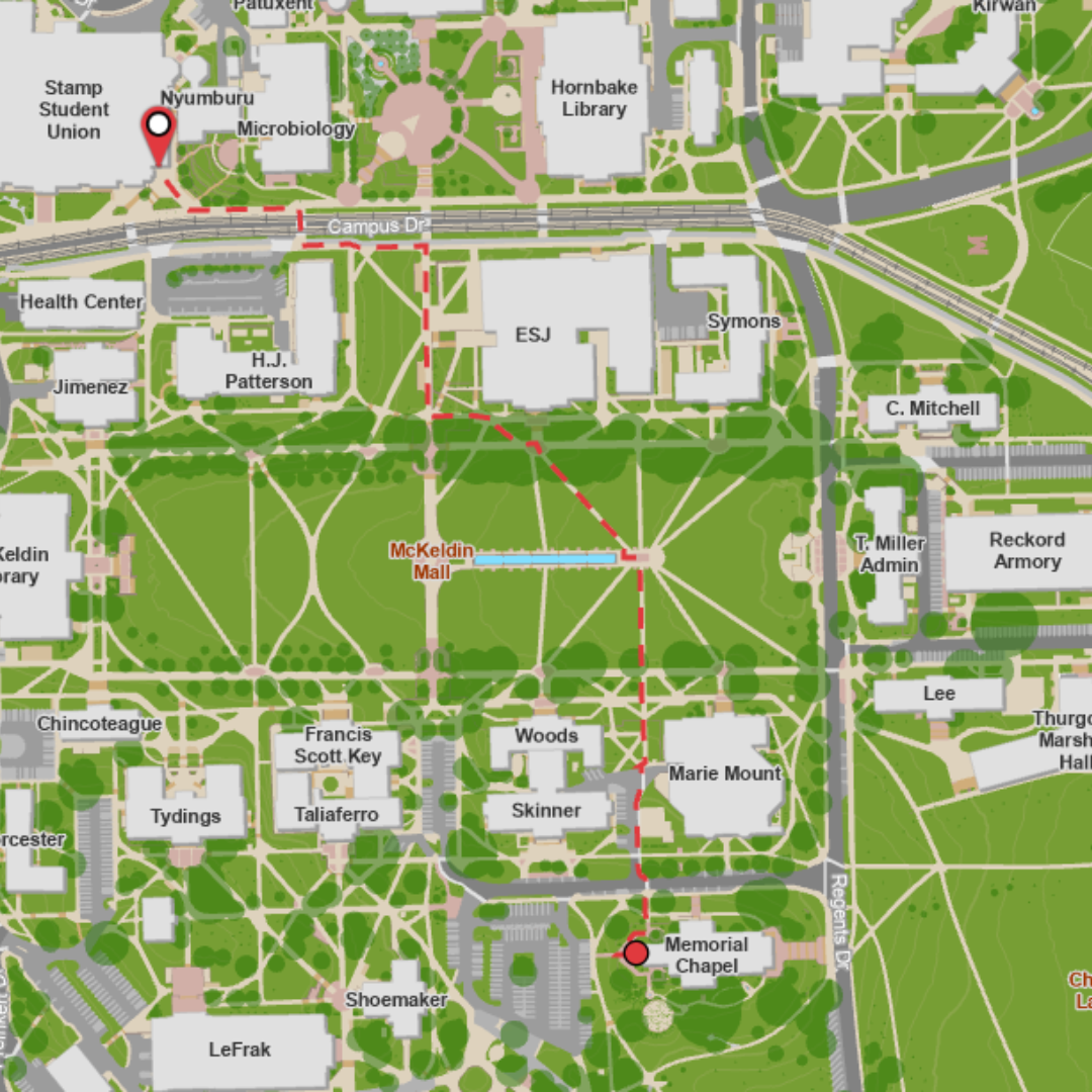 Standard Walking Path from Memorial Chapel to Adele H. Stamp Student Union